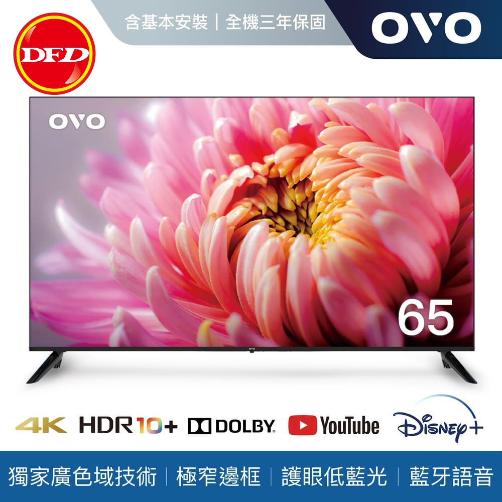 含基本安裝 OVO TA65 電視 65吋 4K HDR 增豔智慧聯網顯示器 公司貨